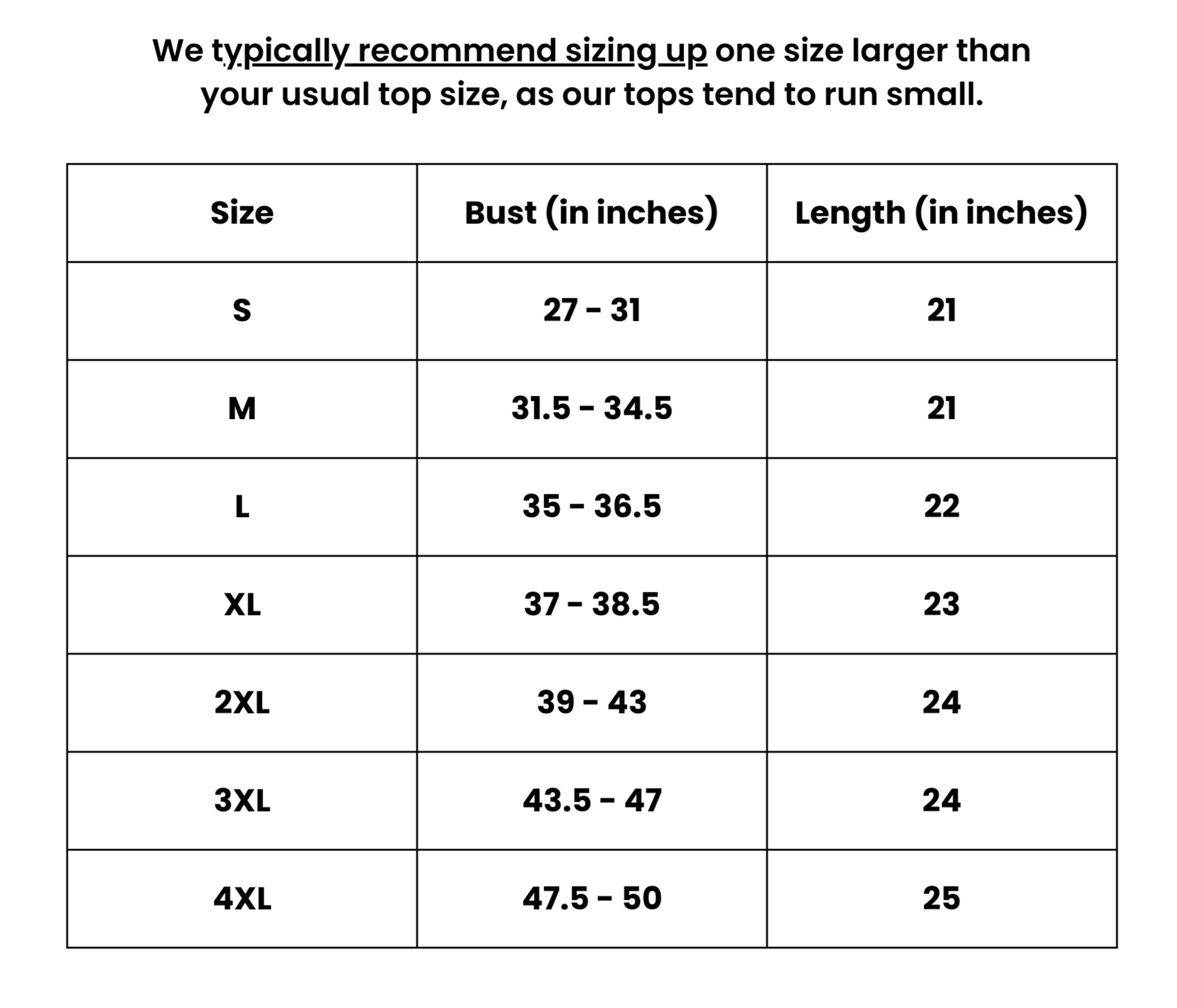 3XL: Bust 43.5-47 inches, Length 24 inches