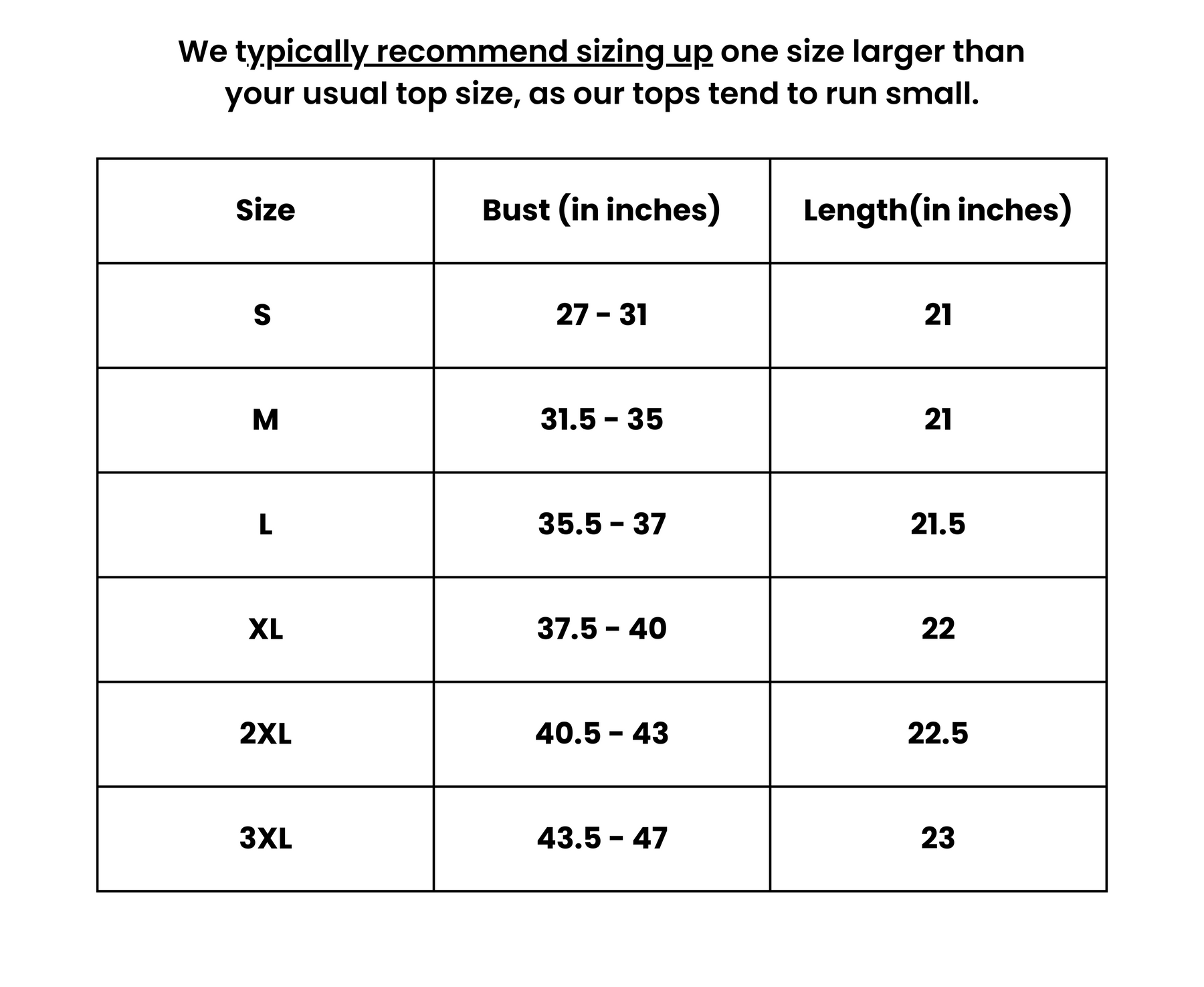 If your top doesn’t fit, we offer free returns! Just email us at support@ovantii.com, and we’ll be happy to assist you!
